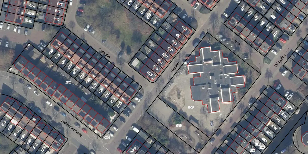 Gebruik de zoekbalk of klik op een perceel voor informatie over de adressen binnen dit perceel.