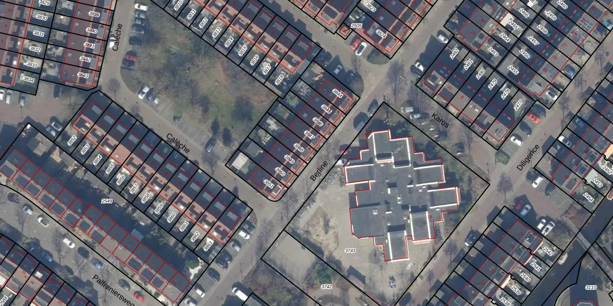 Gebruik de zoekbalk of klik op een perceel voor informatie over de adressen binnen dit perceel.