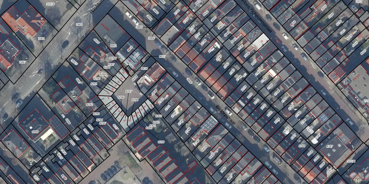 Het perceel waarop Bijdorpstraat 8 staat heeft een oppervlakte van 95 m². Dit is een klein perceel. De perceeloppervlakte wordt geregistreerd door het Kadaster. Gedetailleerde informatie over de maten van dit perceel kunt u vinden in het rapport Kadastrale kaart met maatvoering van Bijdorpstraat 8.