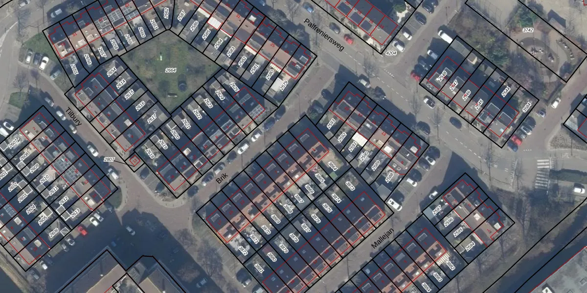 Gebruik de zoekbalk of klik op een perceel voor informatie over de adressen binnen dit perceel.
