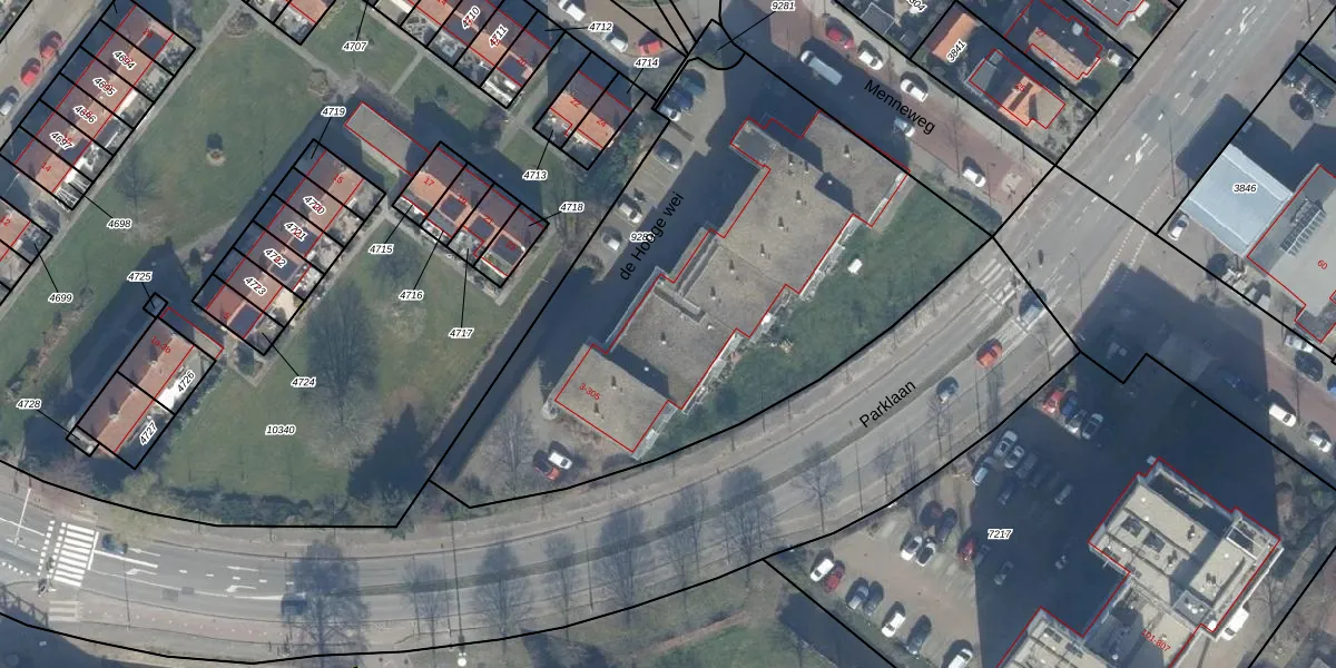 Het perceel waarop de Hooge wei 103 staat heeft een oppervlakte van 2730 m². Dit is een zeer groot perceel. De perceeloppervlakte wordt geregistreerd door het Kadaster. Gedetailleerde informatie over de maten van dit perceel kunt u vinden in het rapport Kadastrale kaart met maatvoering van de Hooge wei 103.