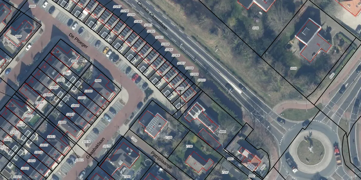Gebruik de zoekbalk of klik op een perceel voor informatie over de adressen binnen dit perceel.