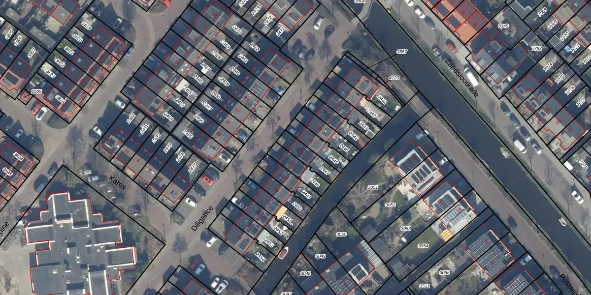 Gebruik de zoekbalk of klik op een perceel voor informatie over de adressen binnen dit perceel.
