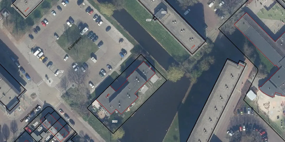 Het perceel waarop Essenplein 2 staat heeft een oppervlakte van 1370 m². Dit is een zeer groot perceel. De perceeloppervlakte wordt geregistreerd door het Kadaster. Gedetailleerde informatie over de maten van dit perceel kunt u vinden in het rapport Kadastrale kaart met maatvoering van Essenplein 2.