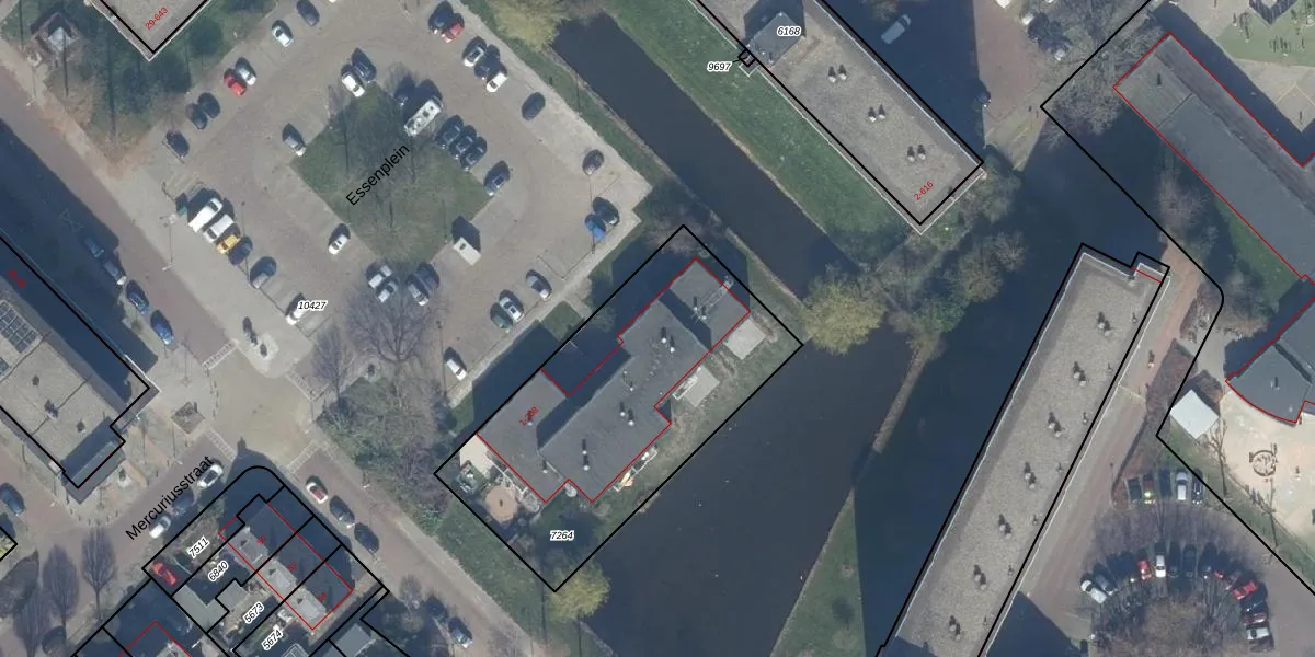 Het perceel waarop Essenplein 4 staat heeft een oppervlakte van 1370 m². Dit is een zeer groot perceel. De perceeloppervlakte wordt geregistreerd door het Kadaster. Gedetailleerde informatie over de maten van dit perceel kunt u vinden in het rapport Kadastrale kaart met maatvoering van Essenplein 4.