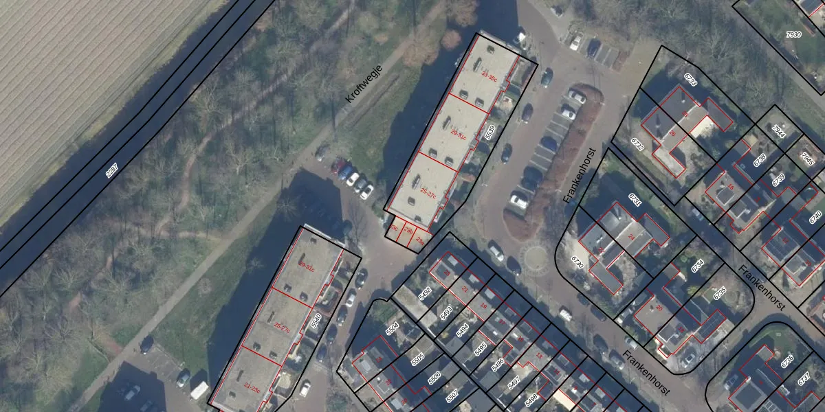 Het perceel waarop Frankenhorst 25-b staat heeft een oppervlakte van 858 m². Dit is een groot perceel. De perceeloppervlakte wordt geregistreerd door het Kadaster. Gedetailleerde informatie over de maten van dit perceel kunt u vinden in het rapport Kadastrale kaart met maatvoering van Frankenhorst 25-b.