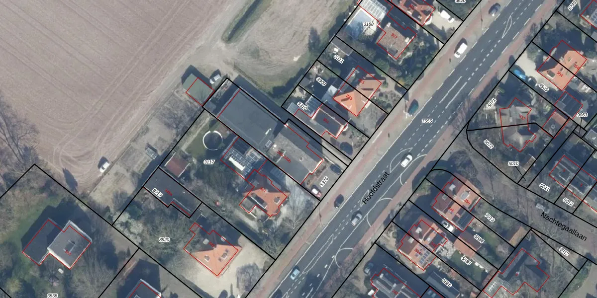 Het perceel waarop Hoofdstraat 349-b staat heeft een oppervlakte van 653 m². Dit is een groot perceel. De perceeloppervlakte wordt geregistreerd door het Kadaster. Gedetailleerde informatie over de maten van dit perceel kunt u vinden in het rapport Kadastrale kaart met maatvoering van Hoofdstraat 349-b.