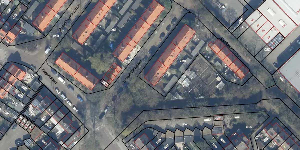 Het perceel waarop Joseph Elststraat 21 staat heeft een oppervlakte van 1830 m². Dit is een zeer groot perceel. De perceeloppervlakte wordt geregistreerd door het Kadaster. Gedetailleerde informatie over de maten van dit perceel kunt u vinden in het rapport Kadastrale kaart met maatvoering van Joseph Elststraat 21.