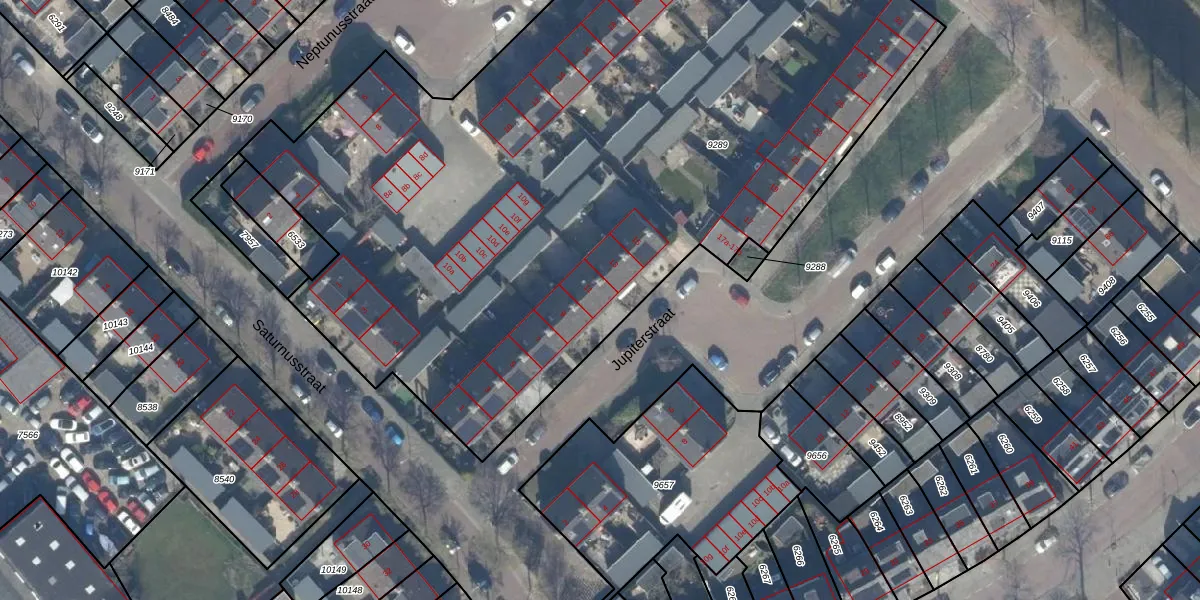 Het perceel waarop Jupiterstraat 11 staat heeft een oppervlakte van 5635 m². Dit is een zeer groot perceel. De perceeloppervlakte wordt geregistreerd door het Kadaster. Gedetailleerde informatie over de maten van dit perceel kunt u vinden in het rapport Kadastrale kaart met maatvoering van Jupiterstraat 11.