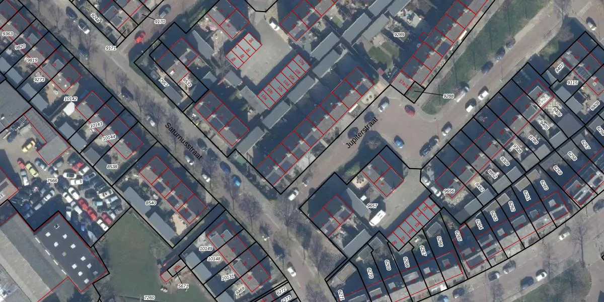 Het perceel waarop Jupiterstraat 5 staat heeft een oppervlakte van 5635 m². Dit is een zeer groot perceel. De perceeloppervlakte wordt geregistreerd door het Kadaster. Gedetailleerde informatie over de maten van dit perceel kunt u vinden in het rapport Kadastrale kaart met maatvoering van Jupiterstraat 5.