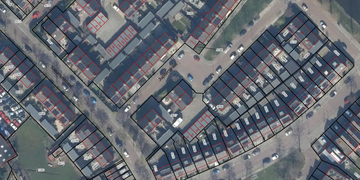 Het perceel waarop Jupiterstraat 6 staat heeft een oppervlakte van 953 m². Dit is een groot perceel. De perceeloppervlakte wordt geregistreerd door het Kadaster. Gedetailleerde informatie over de maten van dit perceel kunt u vinden in het rapport Kadastrale kaart met maatvoering van Jupiterstraat 6.