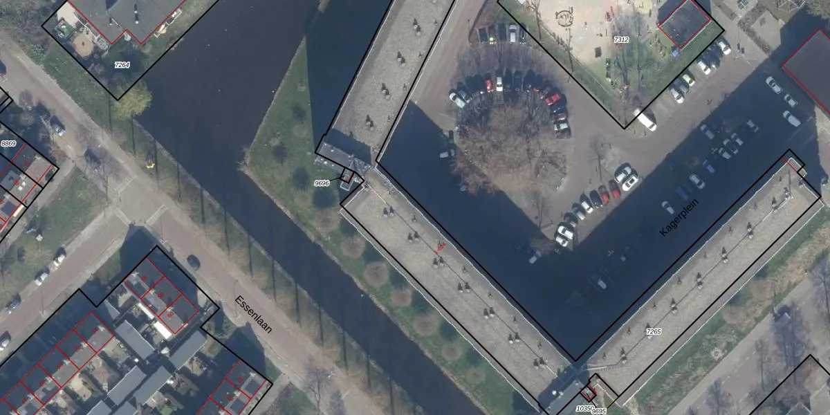 Het perceel waarop Kagerplein 18 staat heeft een oppervlakte van 2935 m². Dit is een zeer groot perceel. De perceeloppervlakte wordt geregistreerd door het Kadaster. Gedetailleerde informatie over de maten van dit perceel kunt u vinden in het rapport Kadastrale kaart met maatvoering van Kagerplein 18.