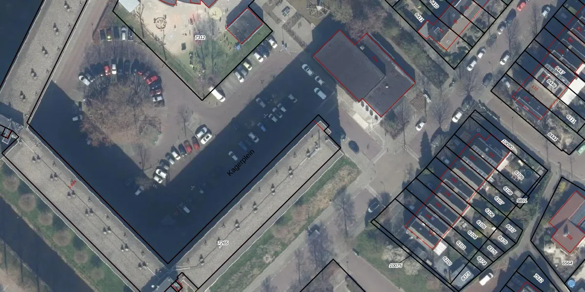 Het perceel waarop Kagerplein 2 staat heeft een oppervlakte van 2935 m². Dit is een zeer groot perceel. De perceeloppervlakte wordt geregistreerd door het Kadaster. Gedetailleerde informatie over de maten van dit perceel kunt u vinden in het rapport Kadastrale kaart met maatvoering van Kagerplein 2.