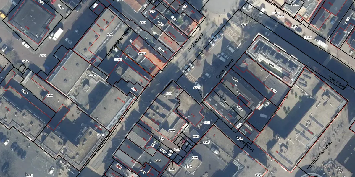Het perceel waarop Oude Haven 2 staat heeft een oppervlakte van 591 m². Dit is een groot perceel. De perceeloppervlakte wordt geregistreerd door het Kadaster. Gedetailleerde informatie over de maten van dit perceel kunt u vinden in het rapport Kadastrale kaart met maatvoering van Oude Haven 2.