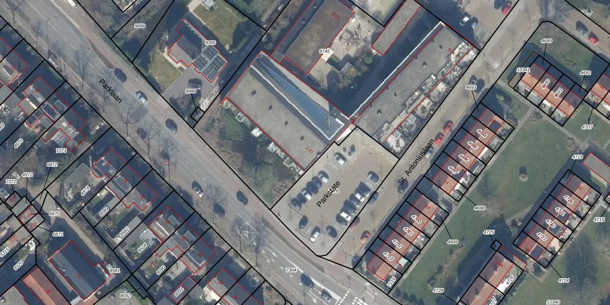 Het perceel waarop Parkstate 5 staat heeft een oppervlakte van 3640 m². Dit is een zeer groot perceel. De perceeloppervlakte wordt geregistreerd door het Kadaster. Gedetailleerde informatie over de maten van dit perceel kunt u vinden in het rapport Kadastrale kaart met maatvoering van Parkstate 5.