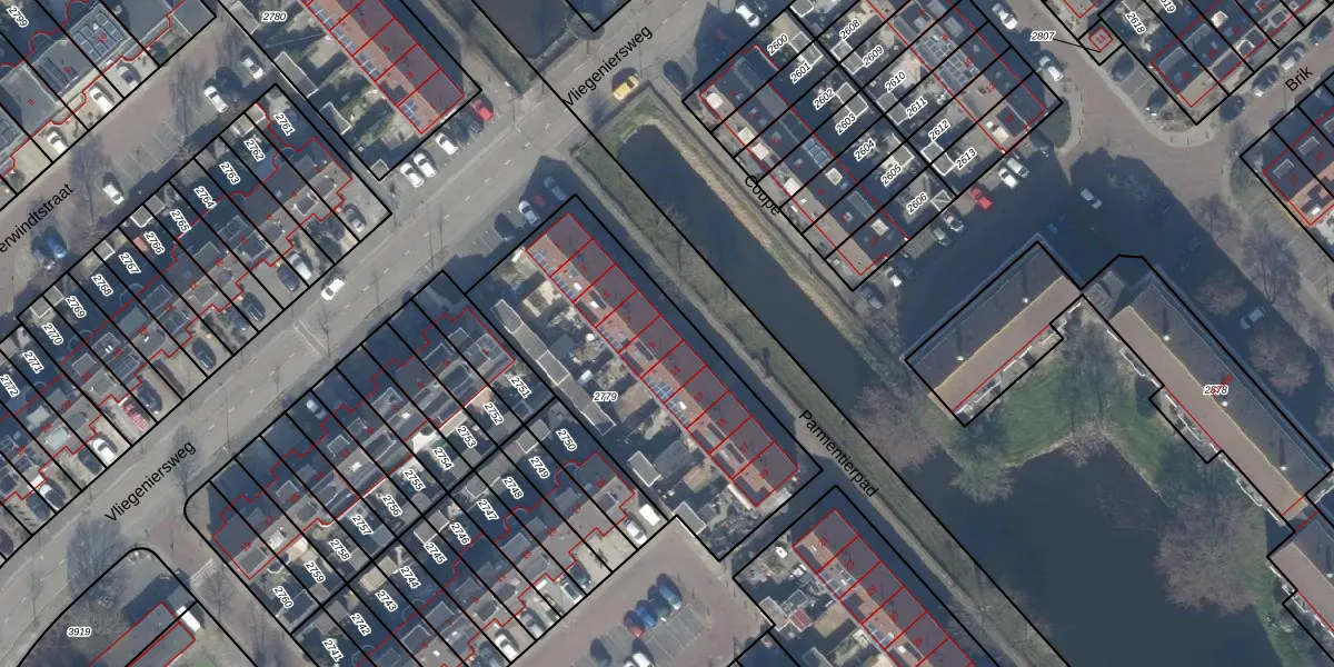 Het perceel waarop Parmentierpad 9 staat heeft een oppervlakte van 1219 m². Dit is een zeer groot perceel. De perceeloppervlakte wordt geregistreerd door het Kadaster. Gedetailleerde informatie over de maten van dit perceel kunt u vinden in het rapport Kadastrale kaart met maatvoering van Parmentierpad 9.