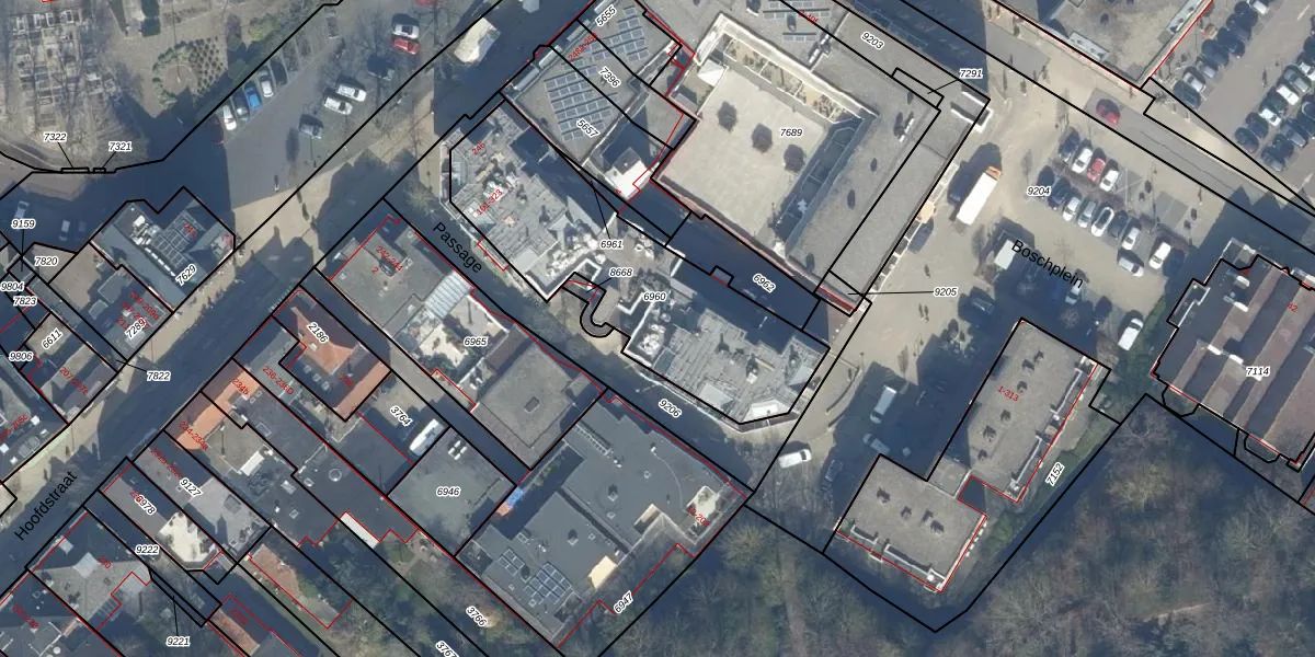 Het perceel waarop Passage 115 staat heeft een oppervlakte van 1030 m². Dit is een zeer groot perceel. De perceeloppervlakte wordt geregistreerd door het Kadaster. Gedetailleerde informatie over de maten van dit perceel kunt u vinden in het rapport Kadastrale kaart met maatvoering van Passage 115.