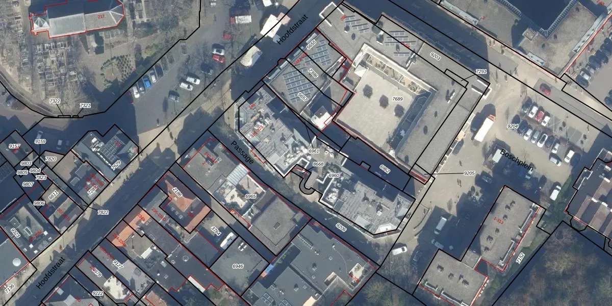 Het perceel waarop Passage 211 staat heeft een oppervlakte van 1030 m². Dit is een zeer groot perceel. De perceeloppervlakte wordt geregistreerd door het Kadaster. Gedetailleerde informatie over de maten van dit perceel kunt u vinden in het rapport Kadastrale kaart met maatvoering van Passage 211.