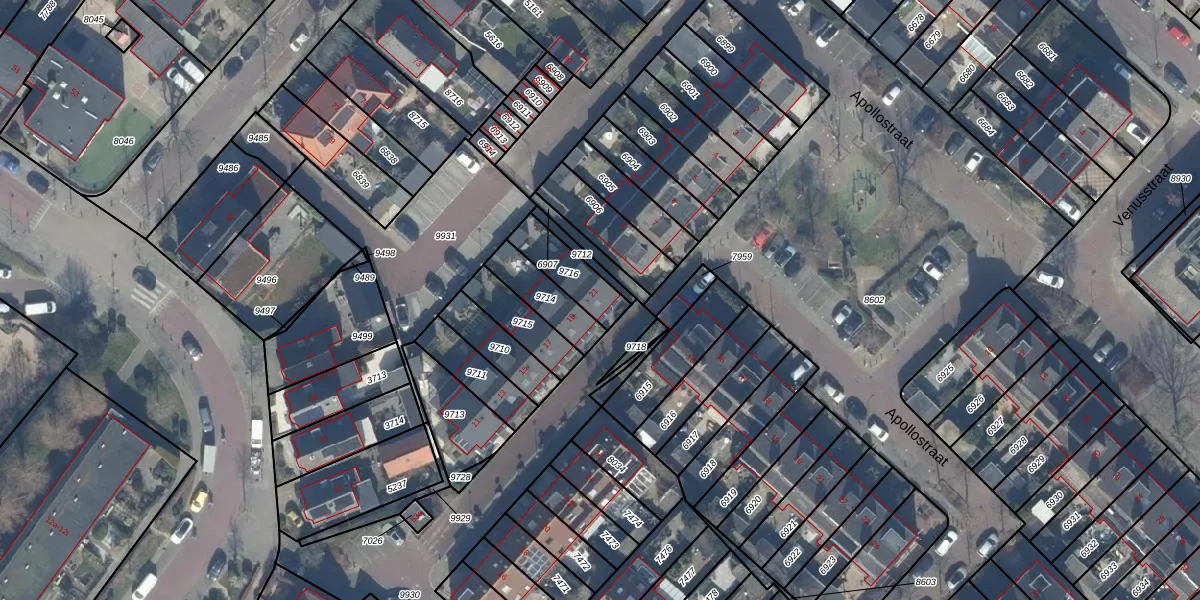 Gebruik de zoekbalk of klik op een perceel voor informatie over de adressen binnen dit perceel.