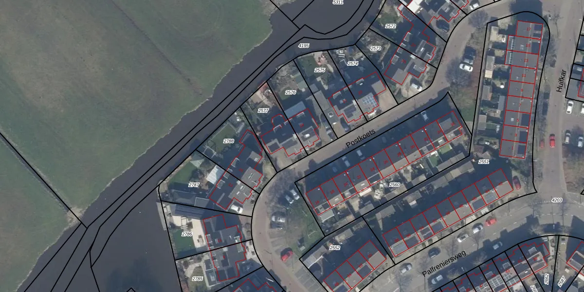 Het perceel waarop Postkoets 17 staat heeft een oppervlakte van 334 m². Dit is een groot perceel. De perceeloppervlakte wordt geregistreerd door het Kadaster. Gedetailleerde informatie over de maten van dit perceel kunt u vinden in het rapport Kadastrale kaart met maatvoering van Postkoets 17.