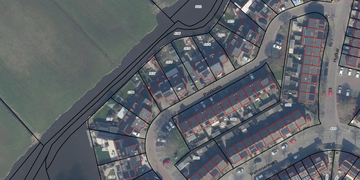 Gebruik de zoekbalk of klik op een perceel voor informatie over de adressen binnen dit perceel.