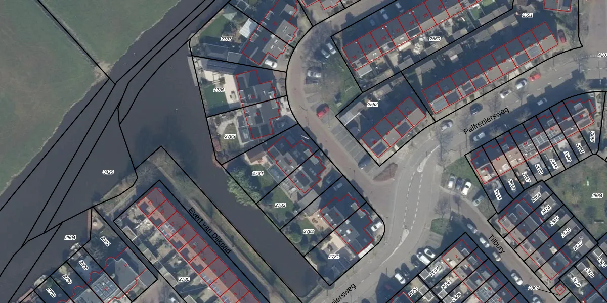 Gebruik de zoekbalk of klik op een perceel voor informatie over de adressen binnen dit perceel.
