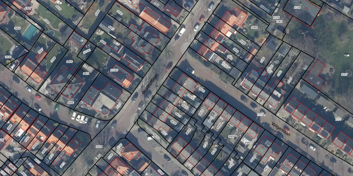 Het perceel waarop Rusthofflaan 39 staat heeft een oppervlakte van 143 m². Dit is een middelgroot perceel. De perceeloppervlakte wordt geregistreerd door het Kadaster. Gedetailleerde informatie over de maten van dit perceel kunt u vinden in het rapport Kadastrale kaart met maatvoering van Rusthofflaan 39.