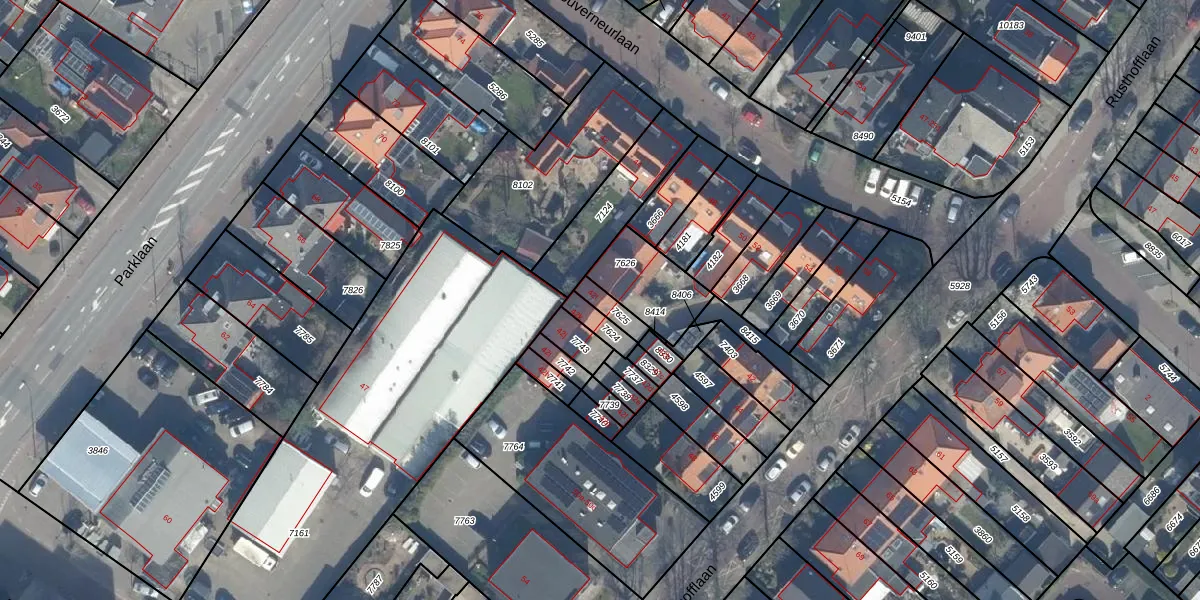 Het perceel waarop Rusthofflaan 42-l staat heeft een oppervlakte van 46 m². Dit is een klein perceel. De perceeloppervlakte wordt geregistreerd door het Kadaster. Gedetailleerde informatie over de maten van dit perceel kunt u vinden in het rapport Kadastrale kaart met maatvoering van Rusthofflaan 42-l.