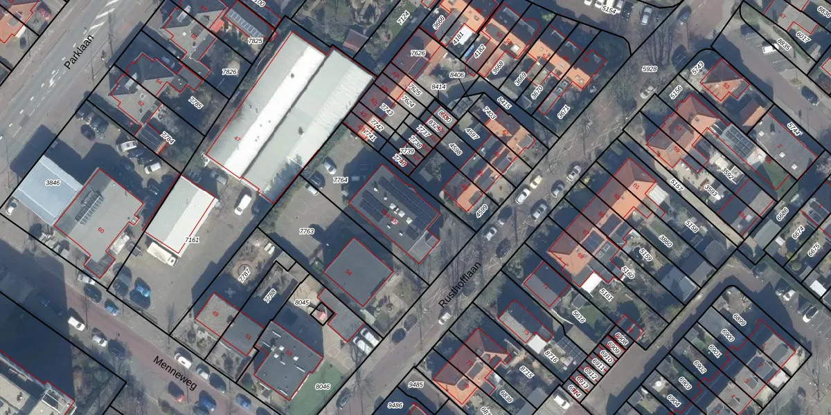 Het perceel waarop Rusthofflaan 50-b staat heeft een oppervlakte van 697 m². Dit is een groot perceel. De perceeloppervlakte wordt geregistreerd door het Kadaster. Gedetailleerde informatie over de maten van dit perceel kunt u vinden in het rapport Kadastrale kaart met maatvoering van Rusthofflaan 50-b.
