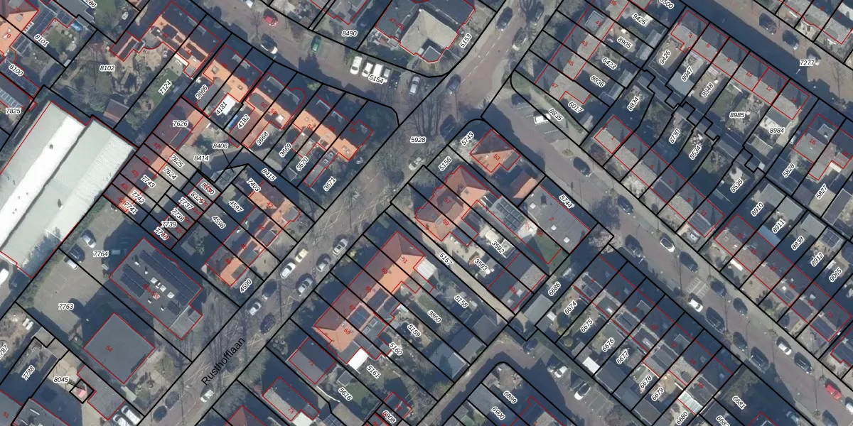 Het perceel waarop Rusthofflaan 59 staat heeft een oppervlakte van 247 m². Dit is een middelgroot perceel. De perceeloppervlakte wordt geregistreerd door het Kadaster. Gedetailleerde informatie over de maten van dit perceel kunt u vinden in het rapport Kadastrale kaart met maatvoering van Rusthofflaan 59.