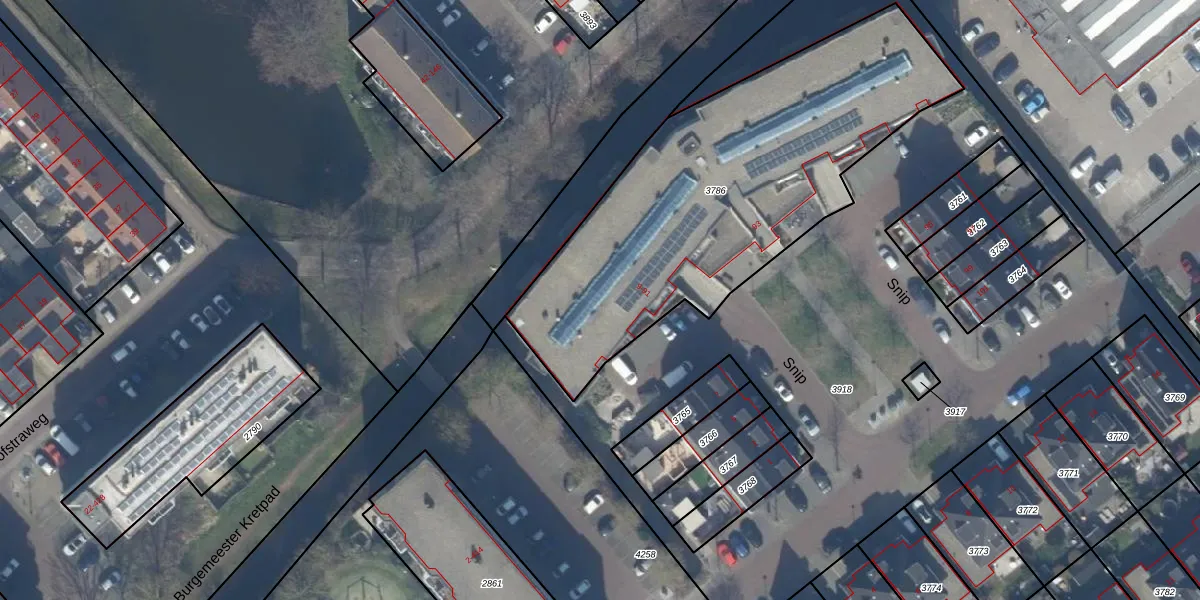 Snip 45 is gelegen op kadastraal perceel SSH00B3786. Deze kadastrale aanduiding is uniek en wordt gebruikt door het Kadaster om eigendomsrechten en andere zakelijke rechten vast te leggen. Het perceel maakt onderdeel uit van de kadastrale gemeente Sassenheim.
