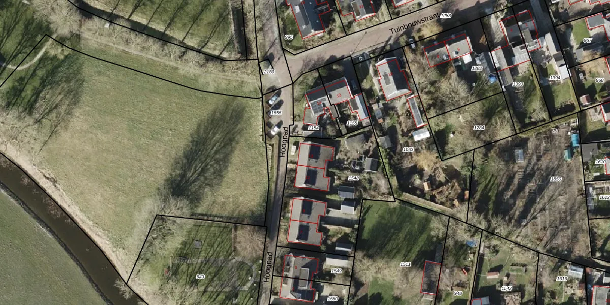 Het perceel waarop Hoogpad 13 staat heeft een oppervlakte van 1136 m². Dit is een zeer groot perceel. De perceeloppervlakte wordt geregistreerd door het Kadaster. Gedetailleerde informatie over de maten van dit perceel kunt u vinden in het rapport Kadastrale kaart met maatvoering van Hoogpad 13.