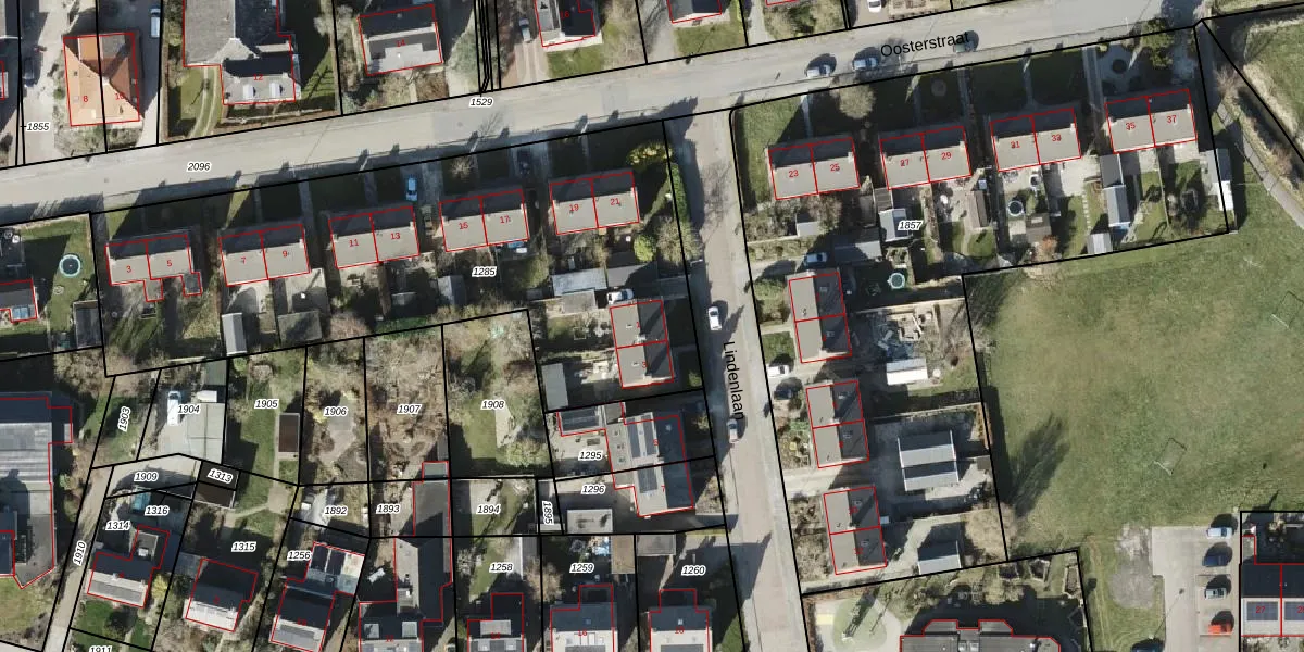 Het perceel waarop Lindenlaan 1 staat heeft een oppervlakte van 2655 m². Dit is een zeer groot perceel. De perceeloppervlakte wordt geregistreerd door het Kadaster. Gedetailleerde informatie over de maten van dit perceel kunt u vinden in het rapport Kadastrale kaart met maatvoering van Lindenlaan 1.