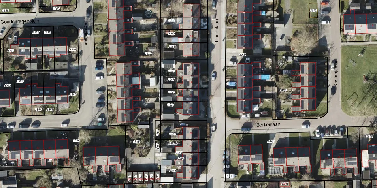 Het perceel waarop Lindenlaan 21 staat heeft een oppervlakte van 169 m². Dit is een middelgroot perceel. De perceeloppervlakte wordt geregistreerd door het Kadaster. Gedetailleerde informatie over de maten van dit perceel kunt u vinden in het rapport Kadastrale kaart met maatvoering van Lindenlaan 21.