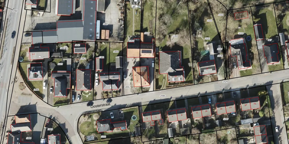 Het perceel waarop Oosterstraat 10 staat heeft een oppervlakte van 680 m². Dit is een groot perceel. De perceeloppervlakte wordt geregistreerd door het Kadaster. Gedetailleerde informatie over de maten van dit perceel kunt u vinden in het rapport Kadastrale kaart met maatvoering van Oosterstraat 10.