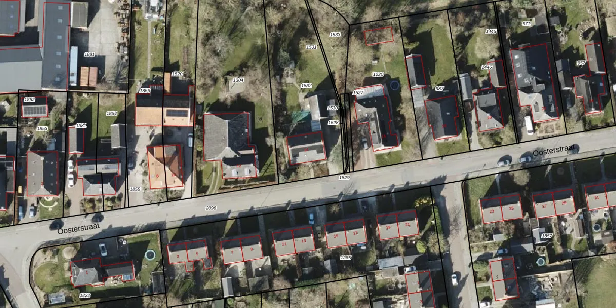 Oosterstraat 14 is gelegen op kadastraal perceel ADP00B1532. Deze kadastrale aanduiding is uniek en wordt gebruikt door het Kadaster om eigendomsrechten en andere zakelijke rechten vast te leggen. Het perceel maakt onderdeel uit van de kadastrale gemeente Adorp.