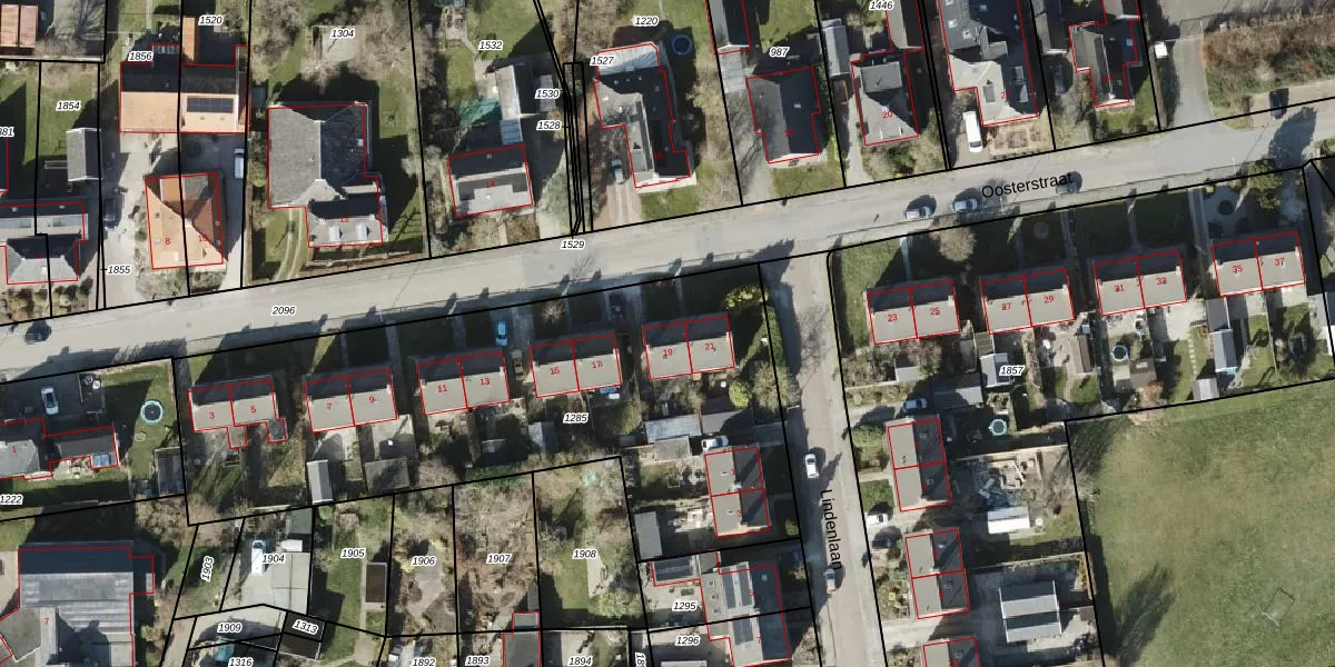Het perceel waarop Oosterstraat 19 staat heeft een oppervlakte van 2655 m². Dit is een zeer groot perceel. De perceeloppervlakte wordt geregistreerd door het Kadaster. Gedetailleerde informatie over de maten van dit perceel kunt u vinden in het rapport Kadastrale kaart met maatvoering van Oosterstraat 19.