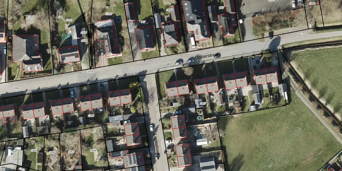 Het perceel waarop Oosterstraat 23 staat heeft een oppervlakte van 3711 m². Dit is een zeer groot perceel. De perceeloppervlakte wordt geregistreerd door het Kadaster. Gedetailleerde informatie over de maten van dit perceel kunt u vinden in het rapport Kadastrale kaart met maatvoering van Oosterstraat 23.