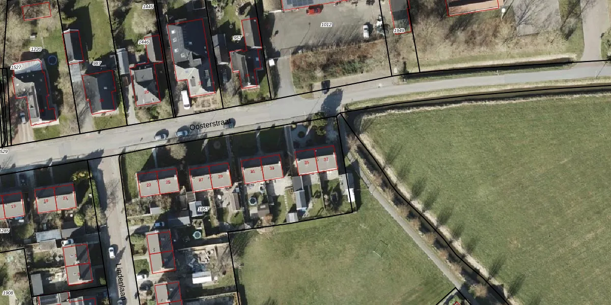 Het perceel waarop Oosterstraat 35 staat heeft een oppervlakte van 3711 m². Dit is een zeer groot perceel. De perceeloppervlakte wordt geregistreerd door het Kadaster. Gedetailleerde informatie over de maten van dit perceel kunt u vinden in het rapport Kadastrale kaart met maatvoering van Oosterstraat 35.