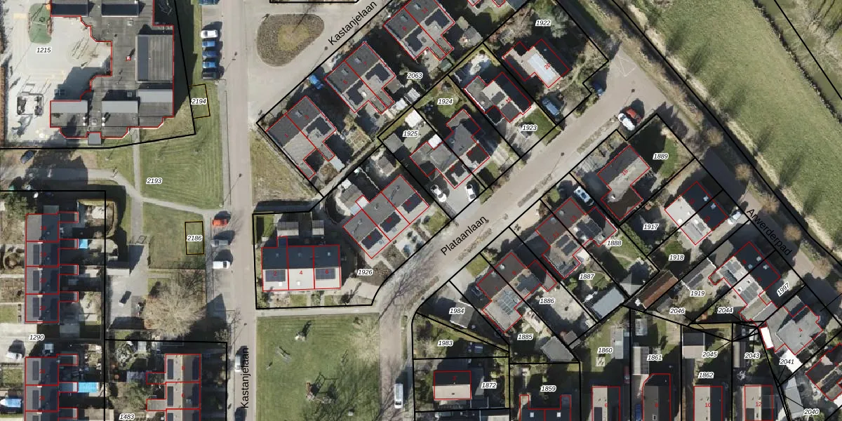 Plataanlaan 12 is gelegen op kadastraal perceel ADP00B1926. Deze kadastrale aanduiding is uniek en wordt gebruikt door het Kadaster om eigendomsrechten en andere zakelijke rechten vast te leggen. Het perceel maakt onderdeel uit van de kadastrale gemeente Adorp.