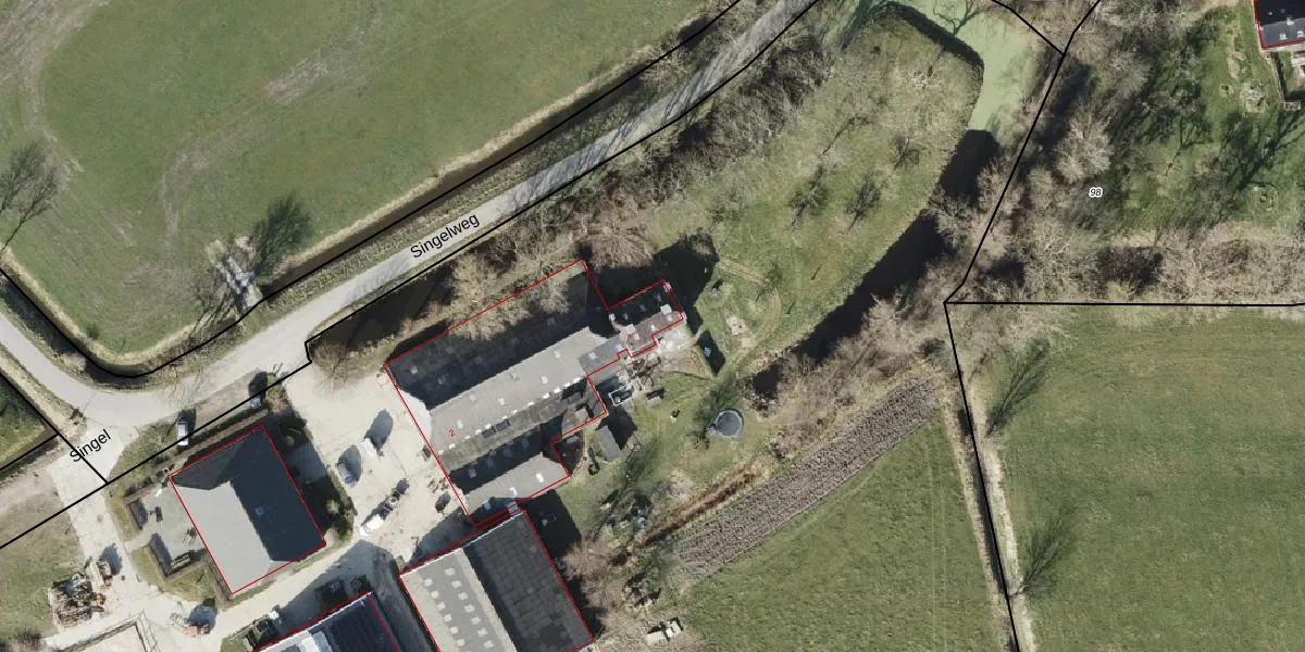 Het perceel waarop Singelweg 2 staat heeft een oppervlakte van 9,6 ha. Dit is een zeer groot perceel. De perceeloppervlakte wordt geregistreerd door het Kadaster. Gedetailleerde informatie over de maten van dit perceel kunt u vinden in het rapport Kadastrale kaart met maatvoering van Singelweg 2.