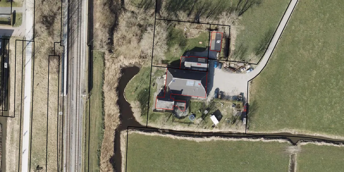 Het perceel waarop Stationsstraat 56 staat heeft een oppervlakte van 3685 m². Dit is een zeer groot perceel. De perceeloppervlakte wordt geregistreerd door het Kadaster. Gedetailleerde informatie over de maten van dit perceel kunt u vinden in het rapport Kadastrale kaart met maatvoering van Stationsstraat 56.