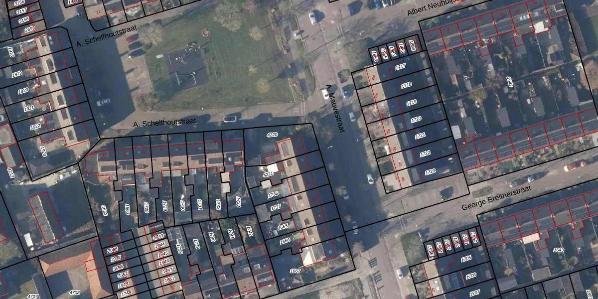 Het perceel waarop A. Mauvestraat 53 staat heeft een oppervlakte van 287 m². Dit is een middelgroot perceel. De perceeloppervlakte wordt geregistreerd door het Kadaster. Gedetailleerde informatie over de maten van dit perceel kunt u vinden in het rapport Kadastrale kaart met maatvoering van A. Mauvestraat 53.