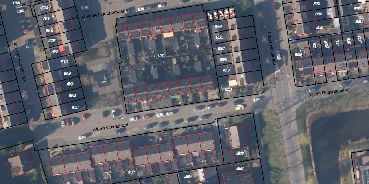 Het perceel waarop Albert Cuypstraat 13 staat heeft een oppervlakte van 2639 m². Dit is een zeer groot perceel. De perceeloppervlakte wordt geregistreerd door het Kadaster. Gedetailleerde informatie over de maten van dit perceel kunt u vinden in het rapport Kadastrale kaart met maatvoering van Albert Cuypstraat 13.