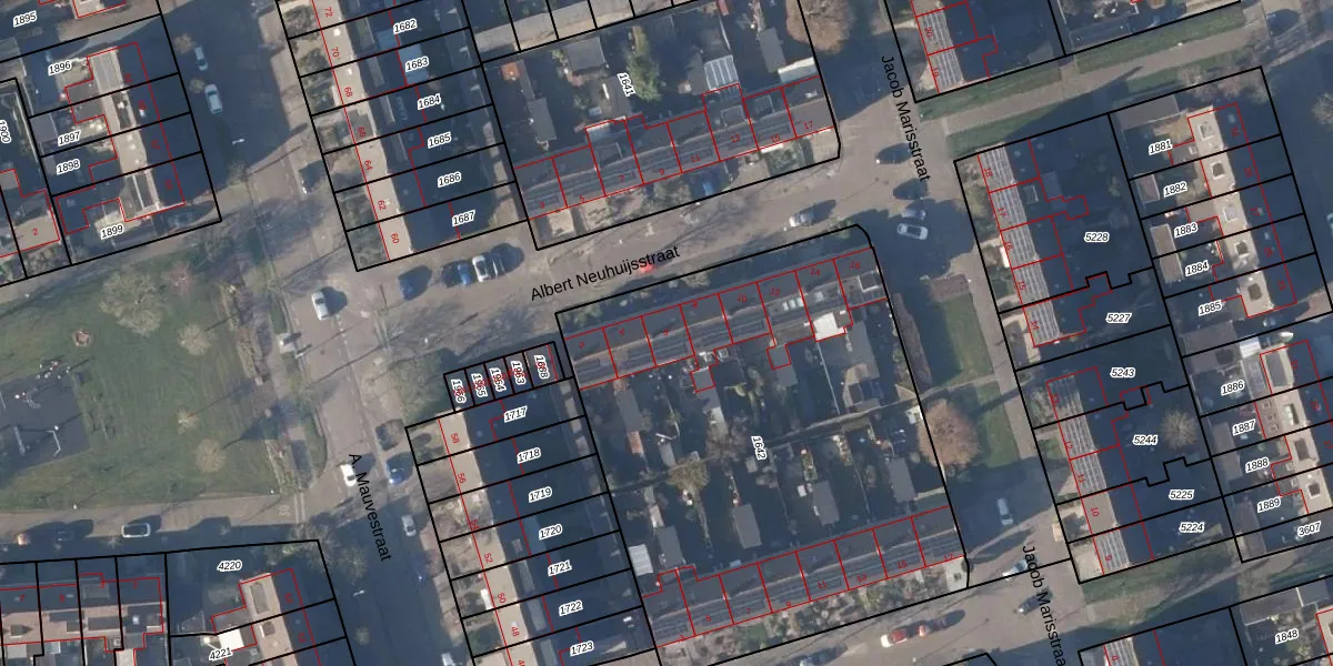 Het perceel waarop Albert Neuhuijsstraat 6 staat heeft een oppervlakte van 2767 m². Dit is een zeer groot perceel. De perceeloppervlakte wordt geregistreerd door het Kadaster. Gedetailleerde informatie over de maten van dit perceel kunt u vinden in het rapport Kadastrale kaart met maatvoering van Albert Neuhuijsstraat 6.