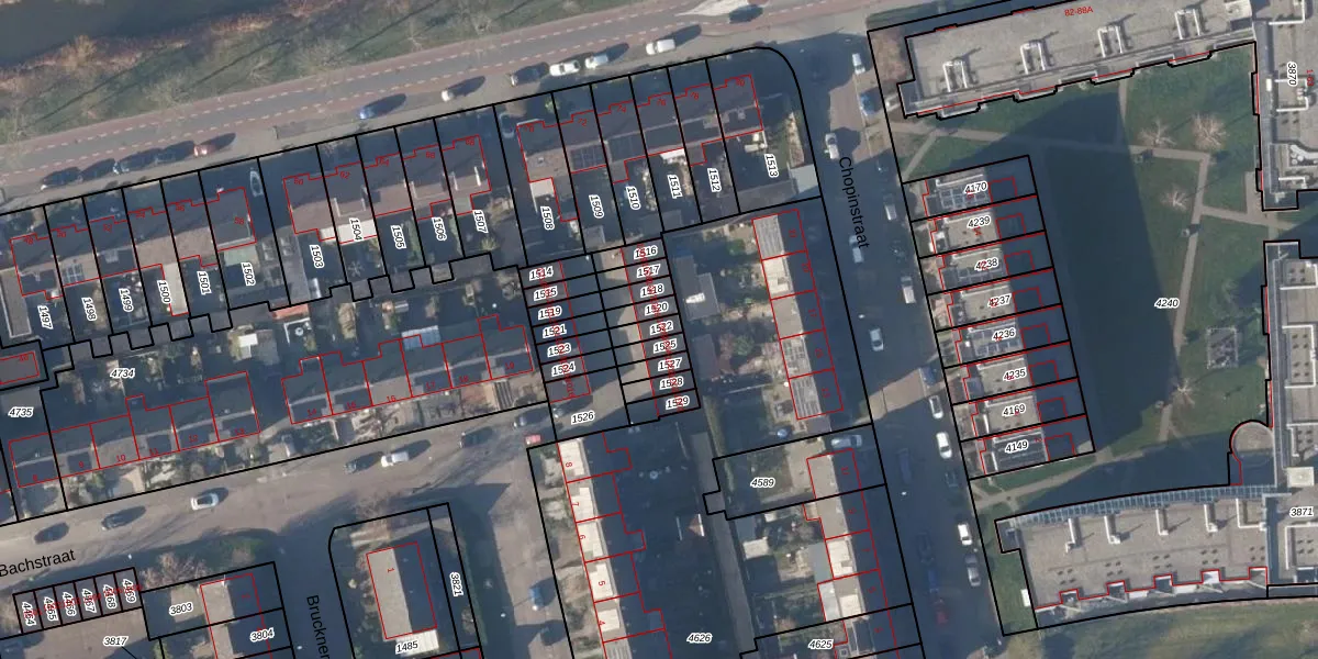 Gebruik de zoekbalk of klik op een perceel voor informatie over de adressen binnen dit perceel.