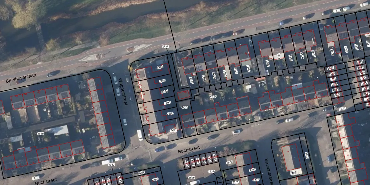 Gebruik de zoekbalk of klik op een perceel voor informatie over de adressen binnen dit perceel.