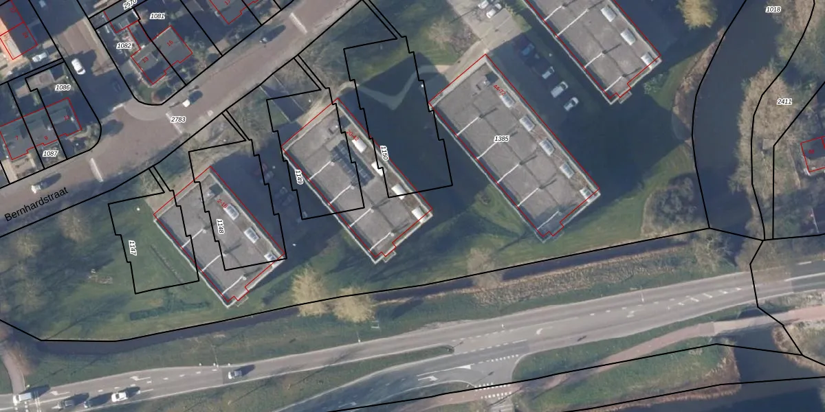 Het perceel waarop Bernhardstraat 26 staat heeft een oppervlakte van 1,1 ha. Dit is een zeer groot perceel. De perceeloppervlakte wordt geregistreerd door het Kadaster. Gedetailleerde informatie over de maten van dit perceel kunt u vinden in het rapport Kadastrale kaart met maatvoering van Bernhardstraat 26.