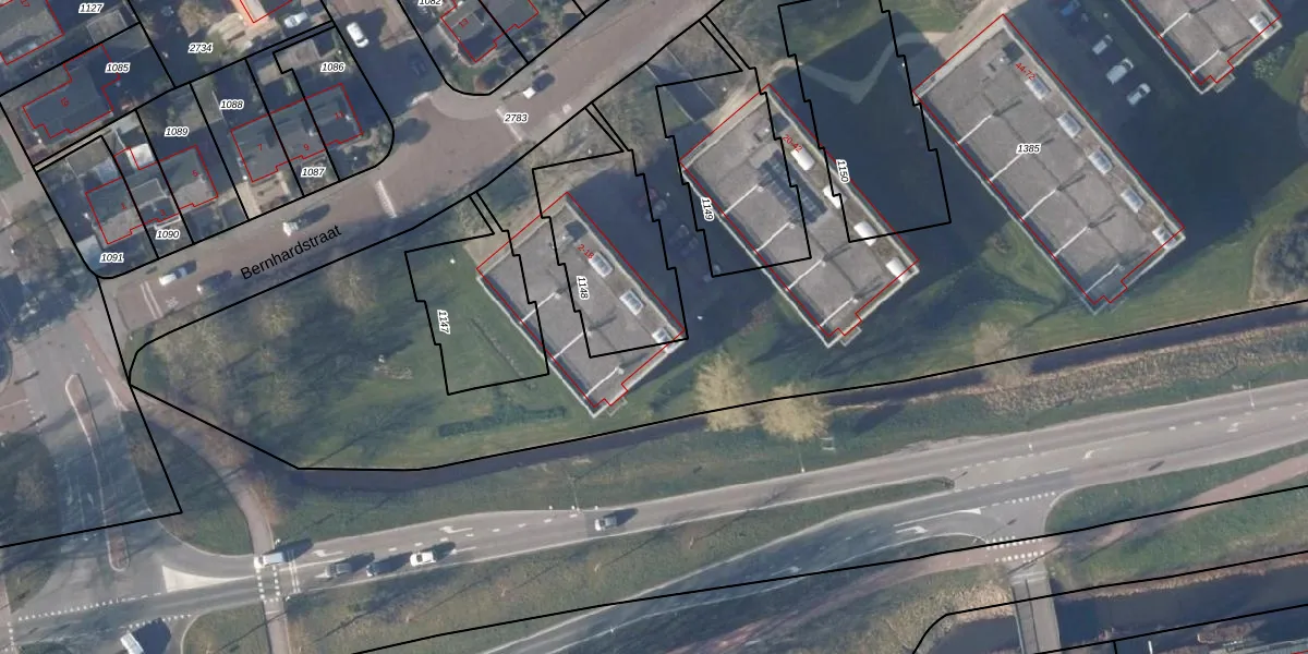 Het perceel waarop Bernhardstraat 6 staat heeft een oppervlakte van 486 m². Dit is een groot perceel. De perceeloppervlakte wordt geregistreerd door het Kadaster. Gedetailleerde informatie over de maten van dit perceel kunt u vinden in het rapport Kadastrale kaart met maatvoering van Bernhardstraat 6.