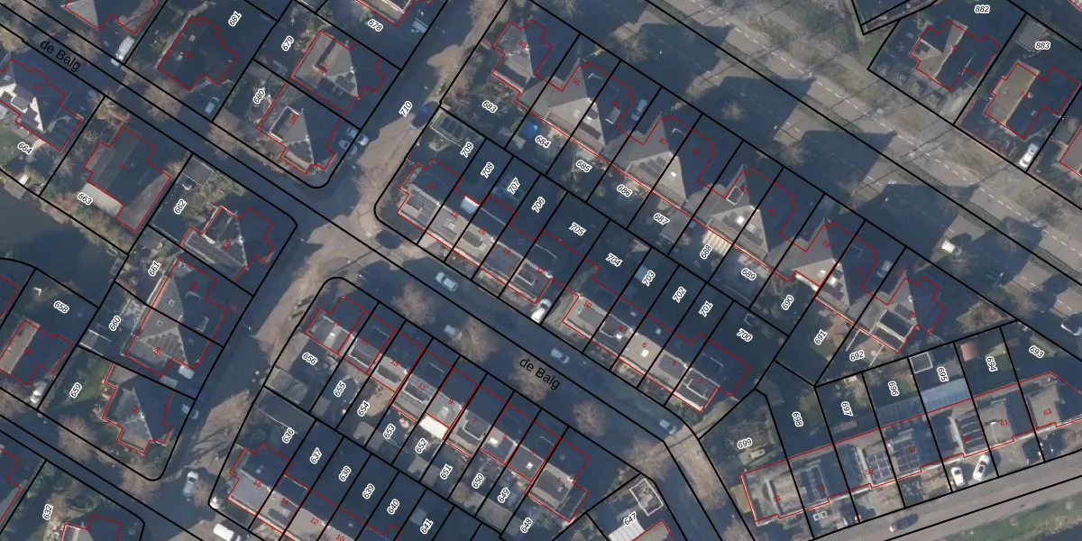 Het perceel waarop de Balg 12 staat heeft een oppervlakte van 220 m². Dit is een middelgroot perceel. De perceeloppervlakte wordt geregistreerd door het Kadaster. Gedetailleerde informatie over de maten van dit perceel kunt u vinden in het rapport Kadastrale kaart met maatvoering van de Balg 12.